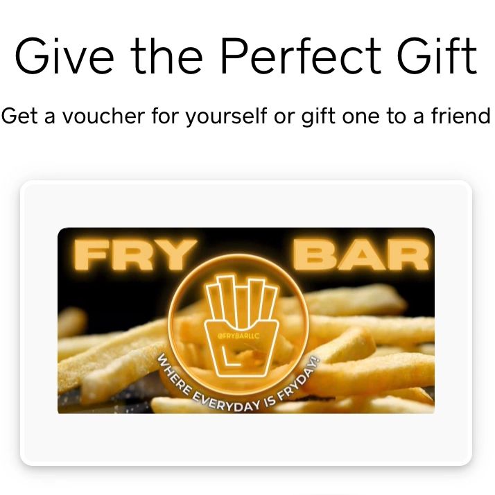 Give the gift of a memorable dining experience at Fry Bar LLC with our e-gift cards. Available in various amounts.